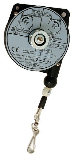 A súlykiegyenlítők lehetővé teszik a kézi szerszámgépek probléma mentes tárolását két művelet között. A robosztus és ellenálló kivitelezésű súlykiegyenlítőket különlegesen megerősített, húzó és csavaró igénybevételnek egyaránt ellenálló függesztő kampóval szerelték fel. A szélesen tekert főrugó lágy és progresszív mozgást biztosít, karbantartási üzembiztonság okából védő dobbal szereltük fel. A szerszámgépek a rugós függesztőhöz karabínerrel csatlakoztathatók. A húzókábel gyors visszatekerésére való tekintettel, a kábel végére gumi ütközőkábel kerül. Kisméretű függesztő rugóknál a súlybeállítás (rugó feszítése) kézi kerékkel végezhető. A nagyobb méretű függesztő rugóknál a súlybeállítás alapvetően speciális kulccsal történik.