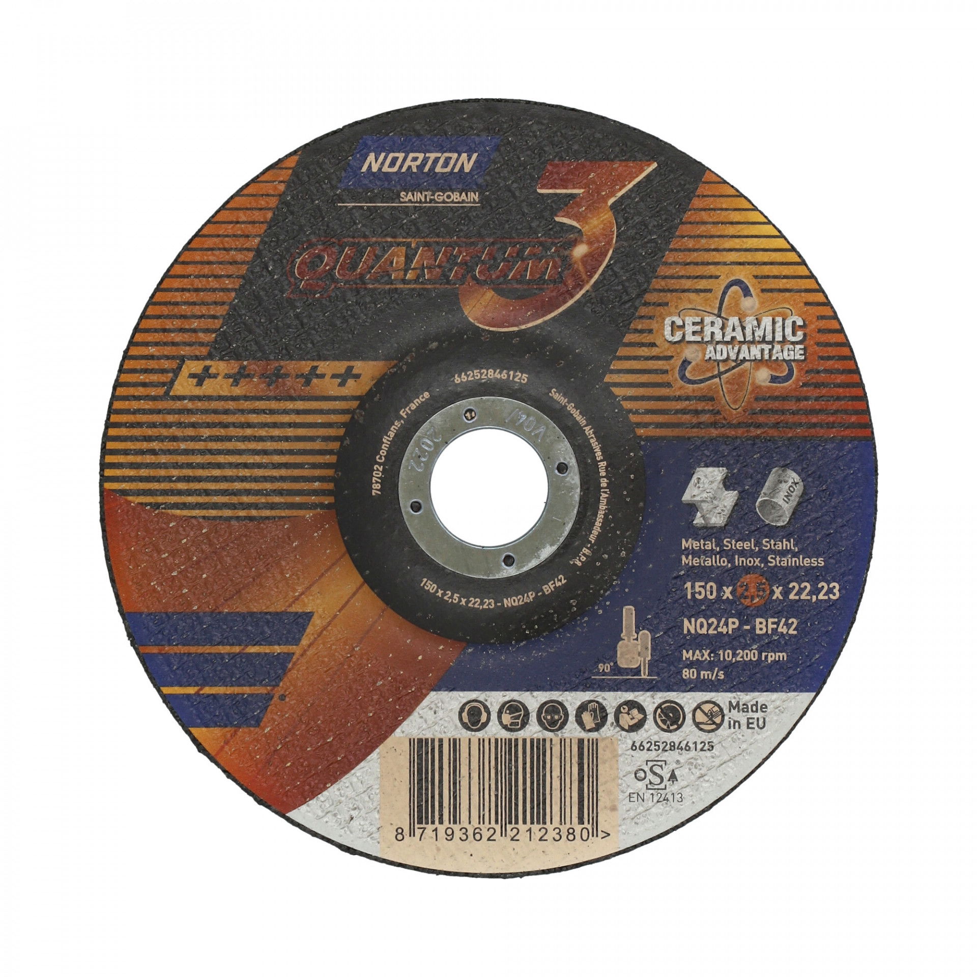 A Norton Quantum fém-inox vágókorong jellemzői a rendkívül gyors vágás, magas élettartam és kitűnő vágóképesség. Innovatív, kerámia vágókorongok. A legújabb fejlesztés, a legnagyobb sebesség és a legnagyobb kopásállóság a leghidegebb vágáshoz. Az innovatív Norton Quantum3 termékcsalád ultravékony kerámia vágókorongjai új szintre emelik a vágási teljesítményt a kényelem, az élettartam és a sebesség terén rendkívüli precizitással, gyorsasággal és pontossággal. A kerámia szemcsék adják ennek a korongnak egyedi karakterét, kategóriájában a legjobb teljesítményt nyújtva acélon és rozsdamentes acélon. Vágjon kevesebb rezgéssel, mivel a szuperéles kerámiaszemcsék alacsony nyomáson is folyamatosan dolgoznak, így a kezelő hosszabb ideig kényelmesebben vághat.