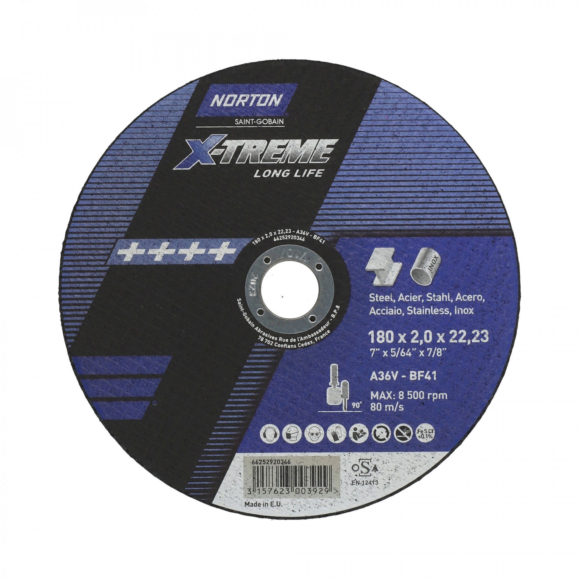 Norton X-Treme Life fém-inox vágókorong 180x2,5x22,23mm A36V, 25 db/csomag